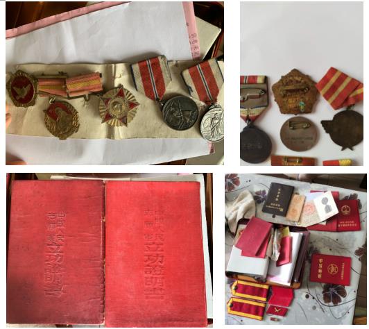 老兵們的立功證明書和軍功章
